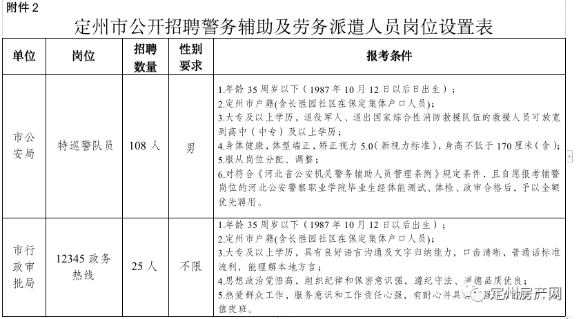 2.定州市公开招聘警务辅助及劳务派遣人员岗位设置表
