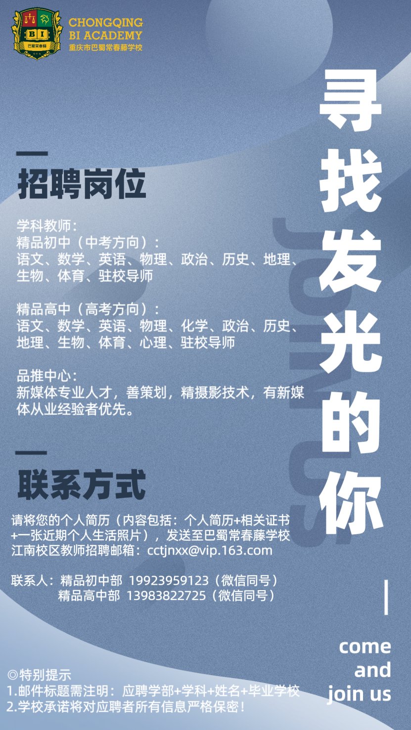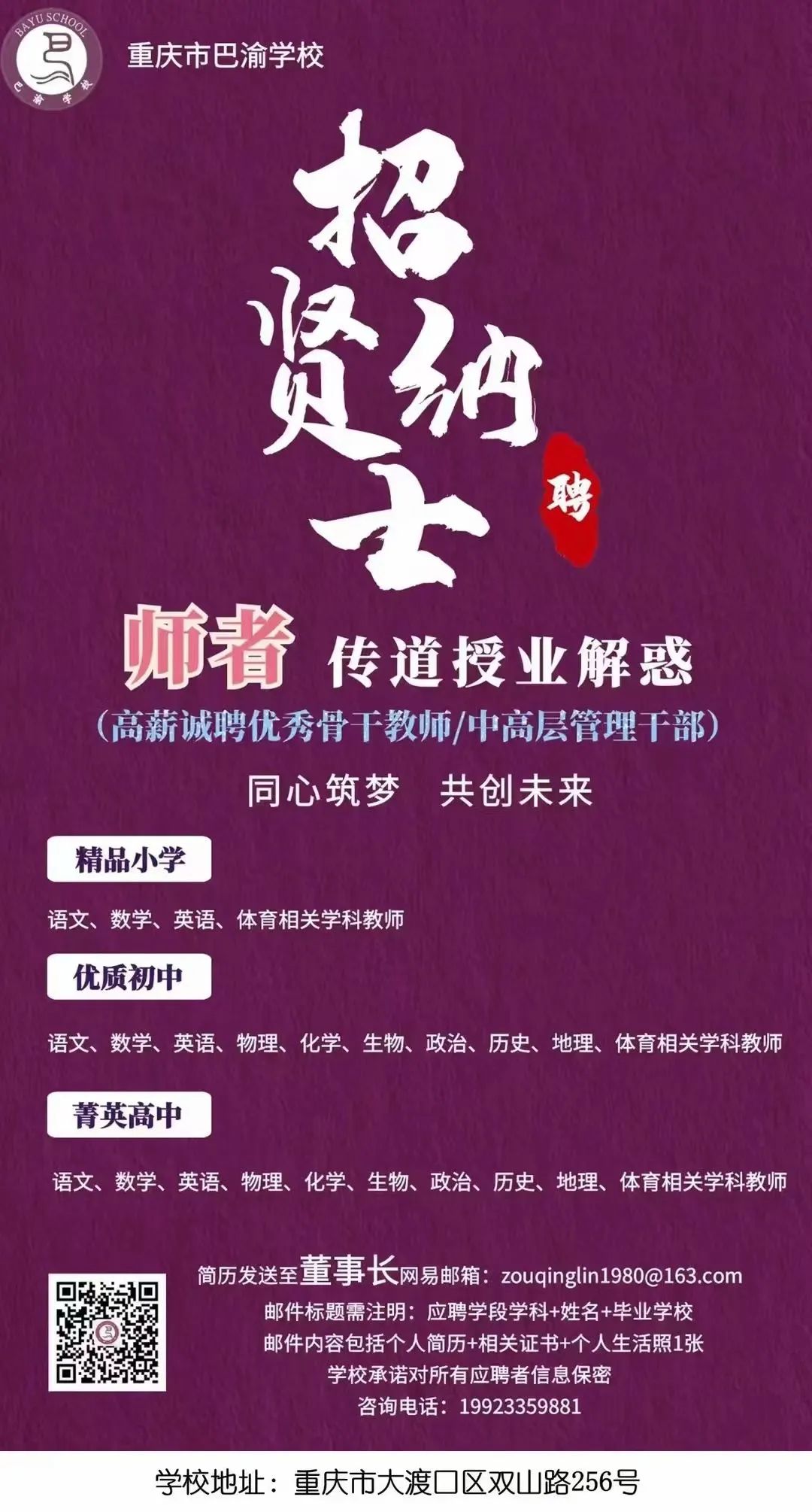川渝地区教师招聘| 成都、重庆、广元,射洪,达州、宜宾、乐山、德阳、绵阳多所学校及幼儿园招聘教师公告。