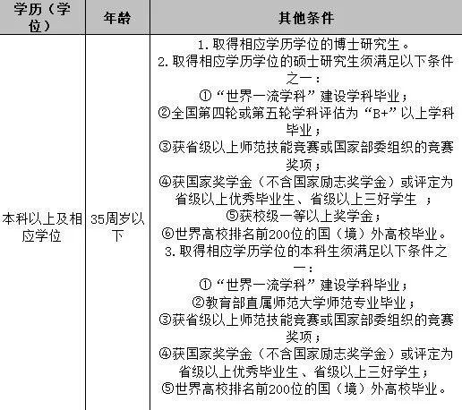 1、师范院校本科学历、非师范院校211本科学历或其他院校研究生学历;