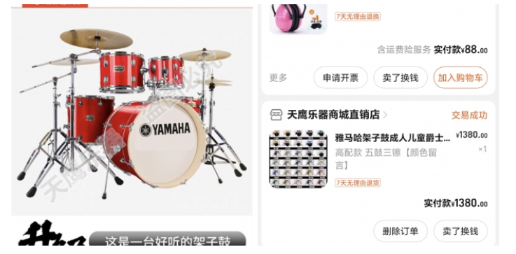 9成新雅马哈架子鼓,适合儿童成人,音质好,质量好,买回来小孩不感兴趣,没打几次,原价1380,现在只要800。