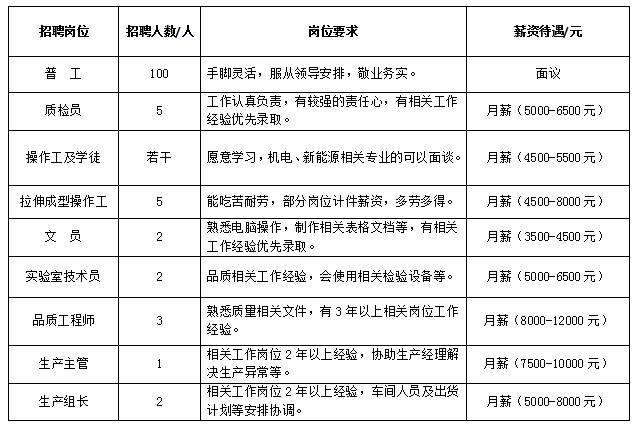 月综合工资:5000-8000元/月(岗位不同薪资方案不等)