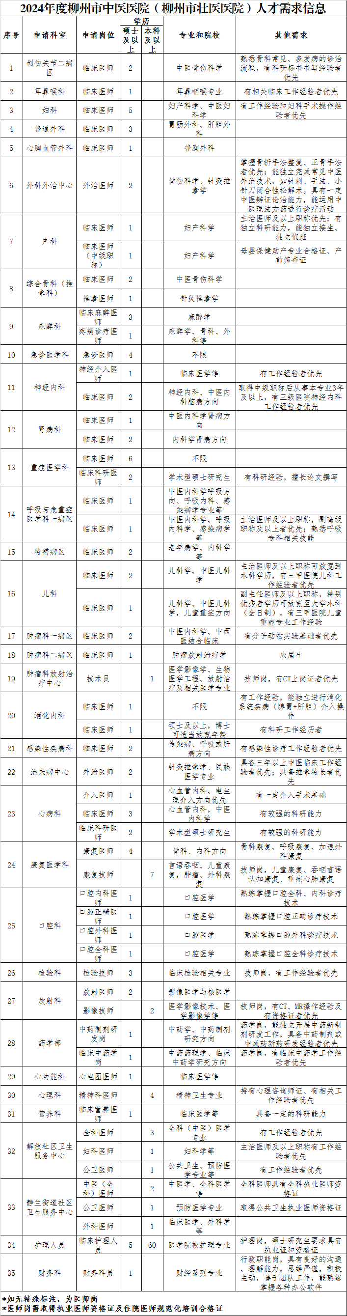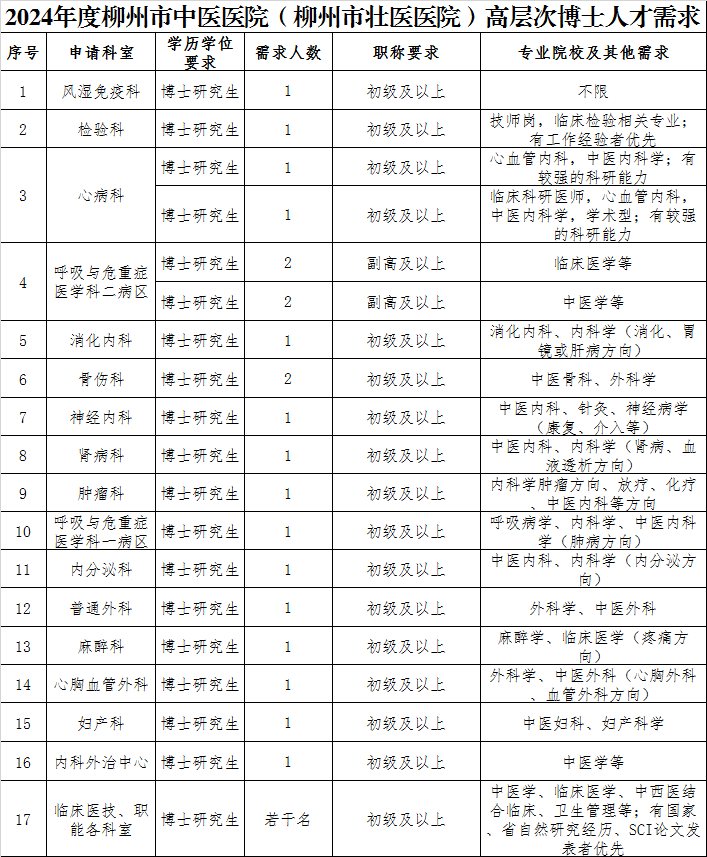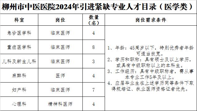 根据医院2024年的发展规划,本着按需招聘,贯彻“公开、公平、公正、竞争、择优”原则,现将柳州市中医医院2024年人才招聘有关事项公告如下: