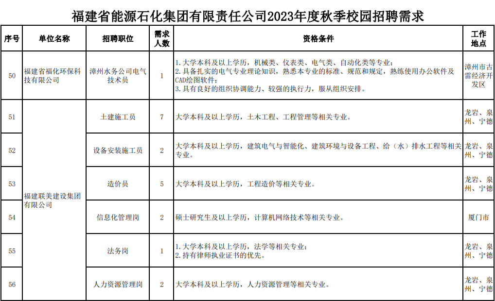 招聘专业:电力类、化工类、电气类、纺织类、土木类、机械类、计算机类、医学类、管理类、经济类、财务类、法律类等专业。