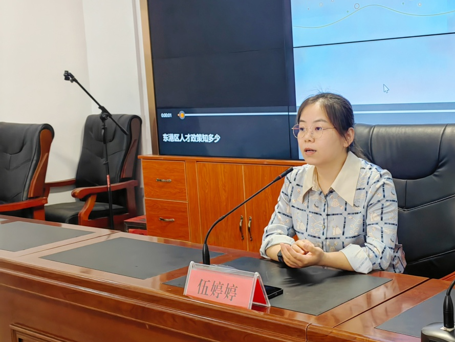 东港区委组织部副部长伍婷婷介绍了东港区相关人才政策,并向广大青年学子发出诚挚邀请,希望广大青年学子留在东港,与东港共成长,共奋进,在建设现代化海滨城市精彩蝶变的火热实践中绽放绚丽之花。