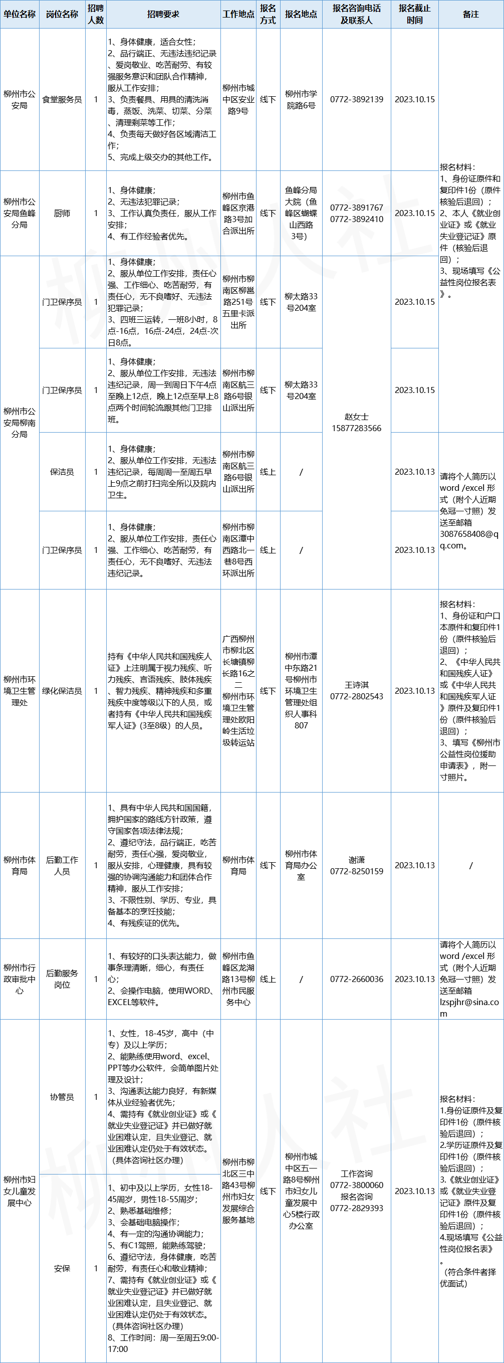 各单位具体报名时间、地点及报名方式如下表,请有上岗意愿的就业困难人员在单位规定的报名时间内,按各岗位要求报名。