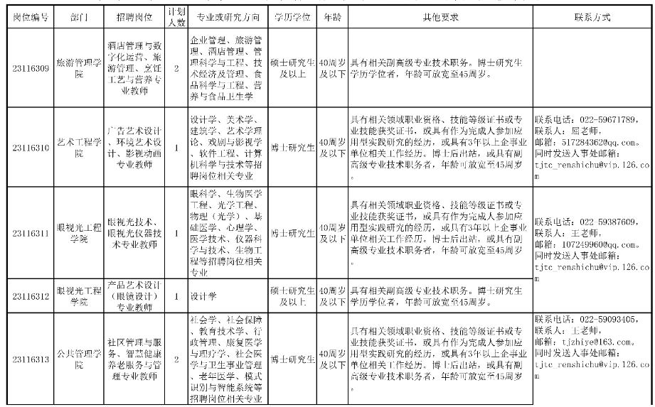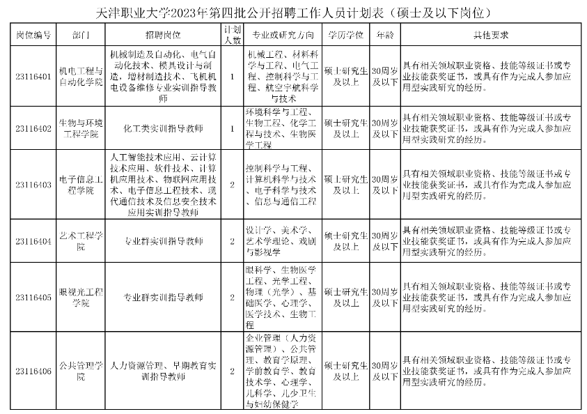 一、【天津职业大学2023年第四批公开招聘工作人员方案(硕士及以下岗位)】