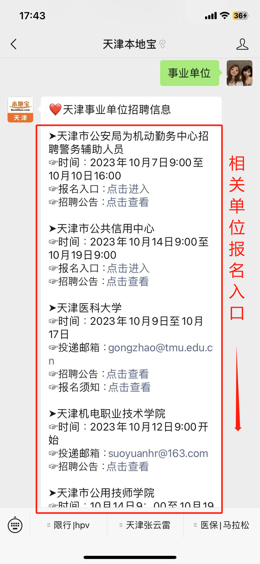 ☑报名入口:关注【天津本地宝】,微信对话框输入【事业单位】即可获取报名入口