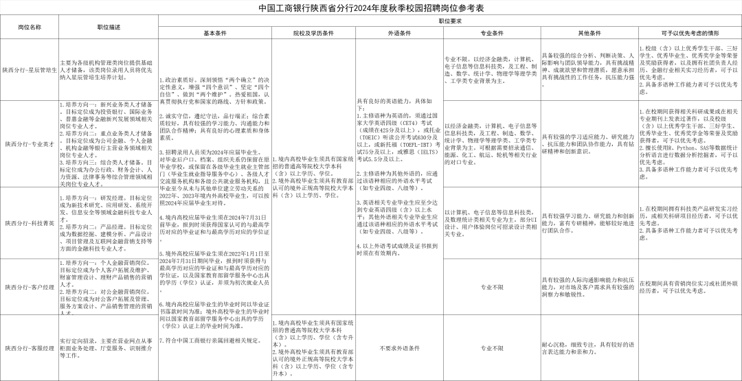 银行具体招聘岗位及条件见下表(点击图片查看大图)