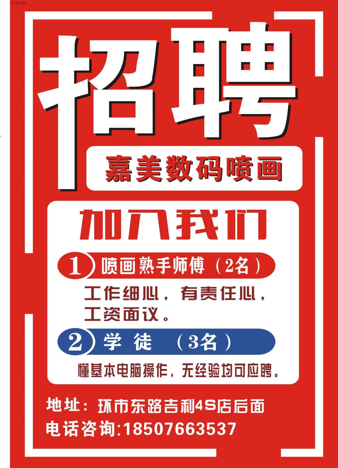 岗位要求:20-35岁,学历不限;识字、身体健康;工作态度积极,能吃苦耐劳,只上白班,能适应加班。