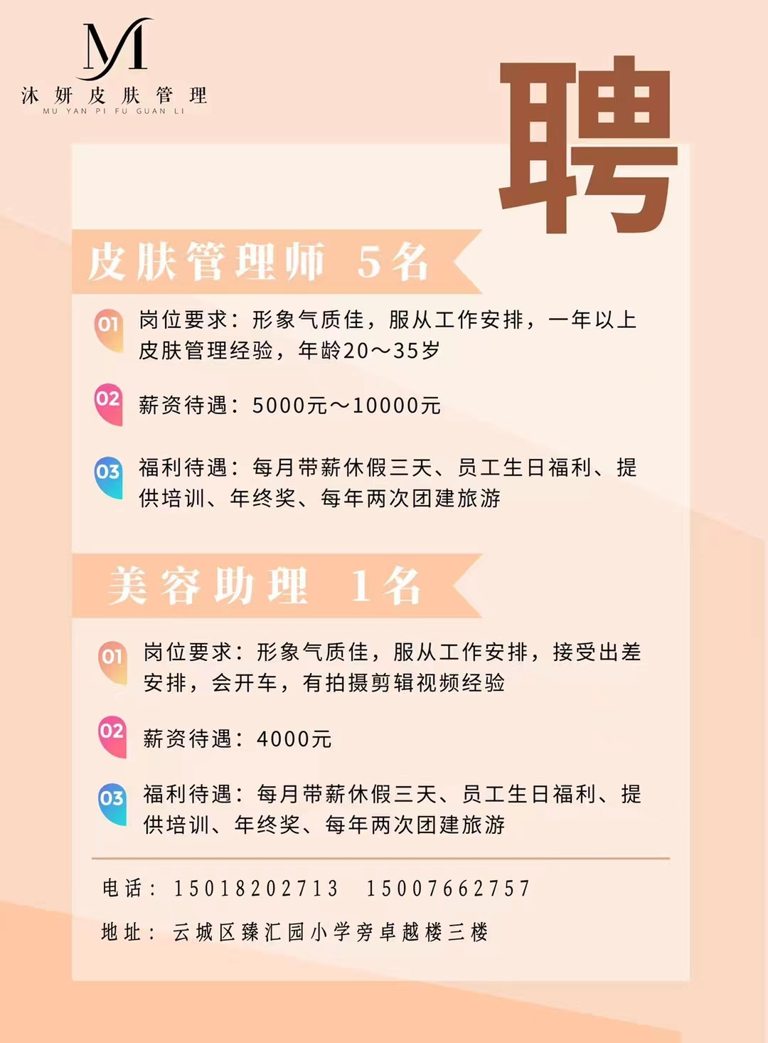 招聘(云城区)销售代表2人: