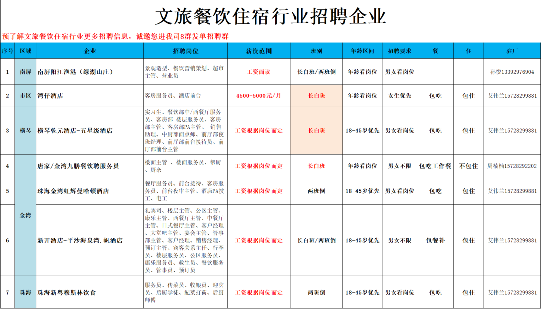 工作地点:香洲区内拱北吉大,大镜山,柠溪片区等等,就近安排上岗