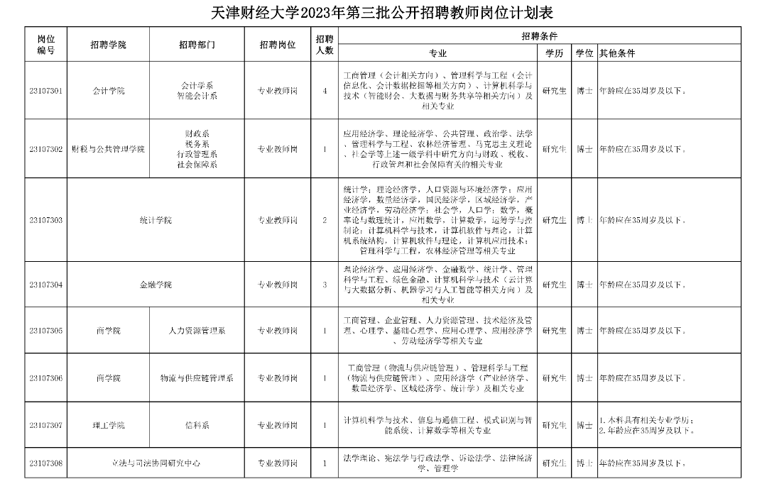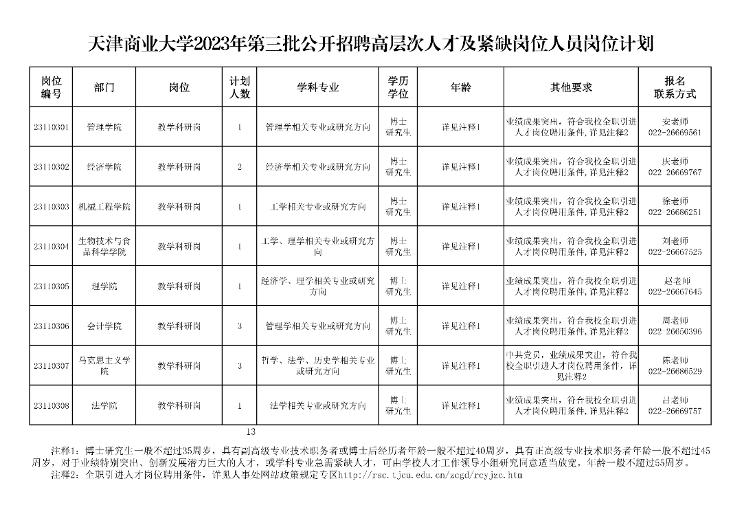 【天津商业大学2023年第三批公开招聘高层次人才及紧缺岗位人员方案】