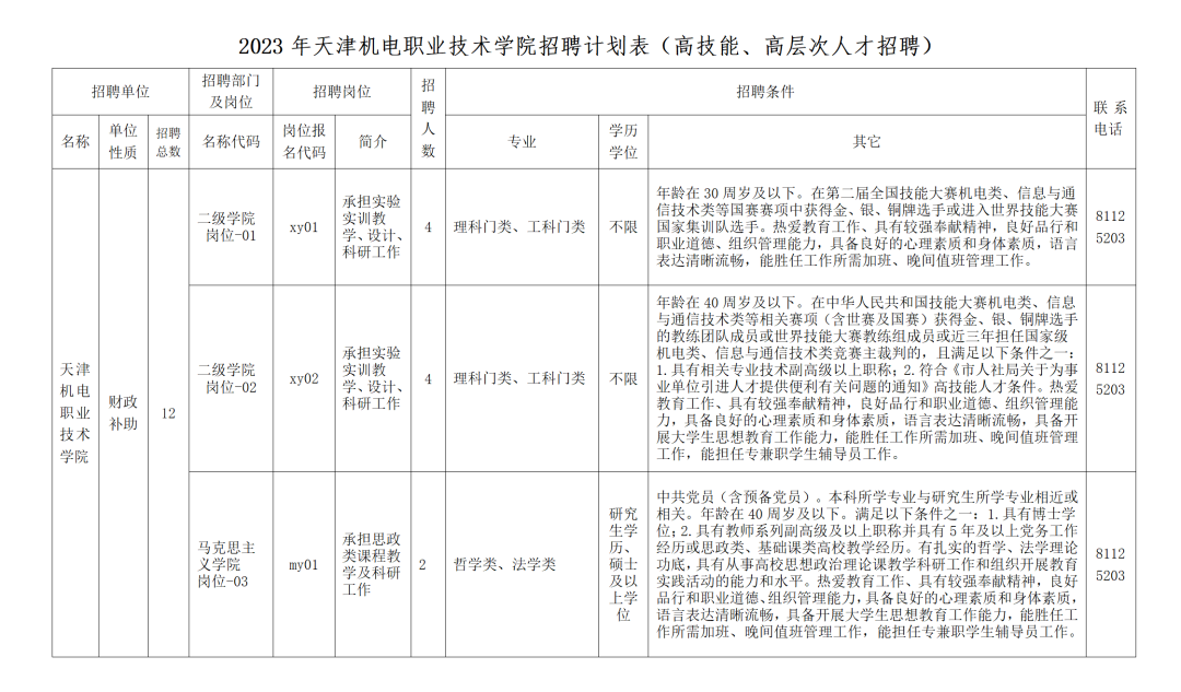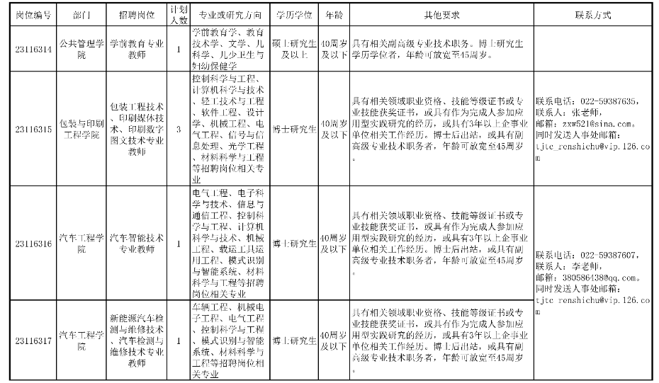 【天津职业大学2023年第四批公开招聘工作人员方案(硕士及以下岗位)】