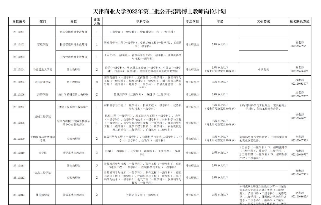 【天津商业大学2023年第二批公开招聘博士教师方案】