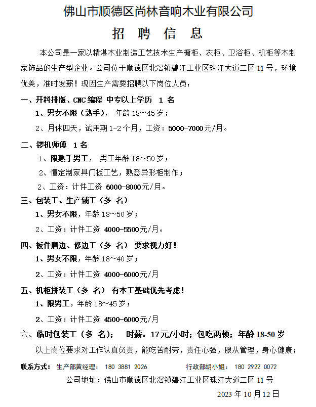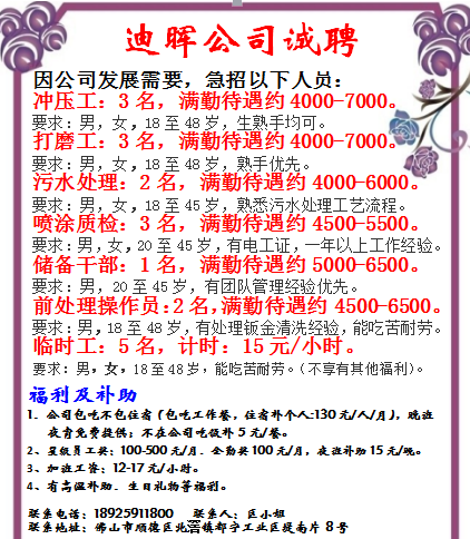 薪资5-6千,12小时,两班制,月休2天,包食宿。