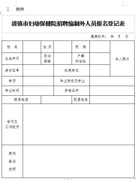附件:清镇市妇幼保健院招聘编制外人员报名登记表