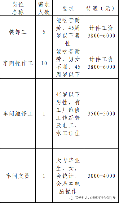 1、烘干机操作工5名:男性优先,45 岁以下;