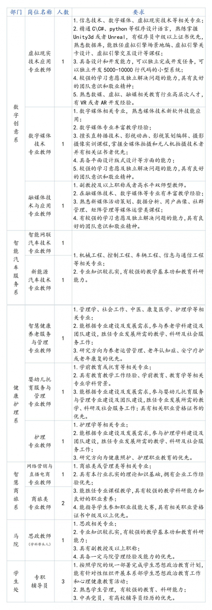 专业匹配,有良好的专业能力、授课能力及科研能力,副教授、应届生优先。