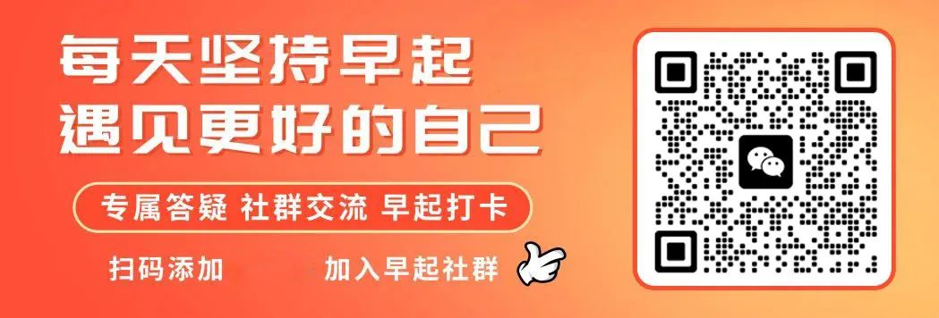 2023年新的开始,从现在起每天坚持读书、早起、运动,给自己一个实现自我的蜕变的机会。一个人走的很快,但是一群人才能走得更远。为此我建立了“成长”和“早起”两个行动社群,与志同道合的伙伴一起养成自律的好习惯。此外,在互联网时代,你也可以学习陪伴营的运营方式,建立自己的自律社群,说不定这将是你实现副业变现的开始~扫码加入社群和小伙伴一起进步