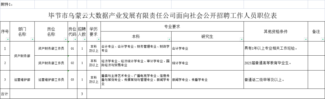(三)本次招聘工作未尽事宜,由毕节市乌蒙云大数据产业发展有限责任公司另行通知。
