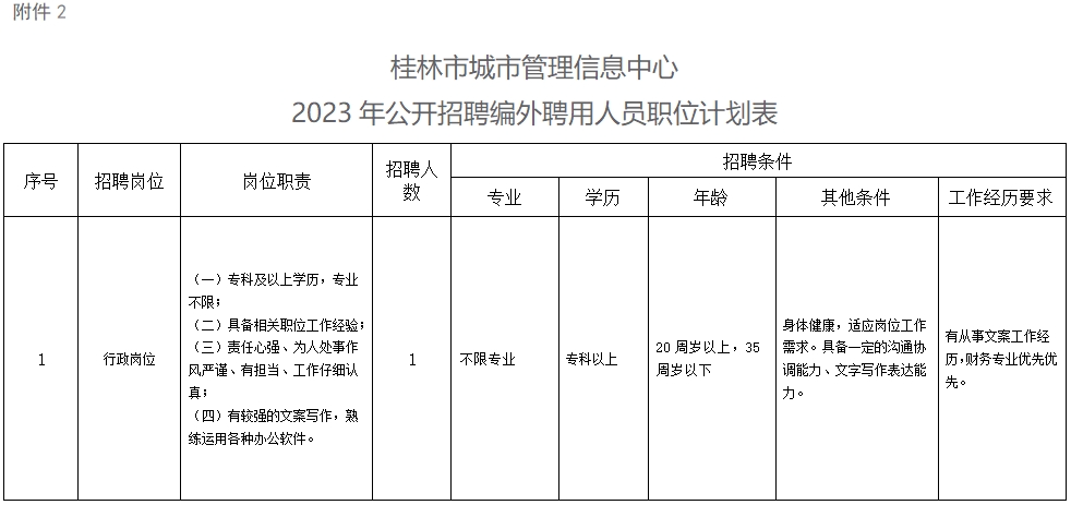 2.桂林市城市管理信息中心2023年公开招聘编外聘用人员职位计划表