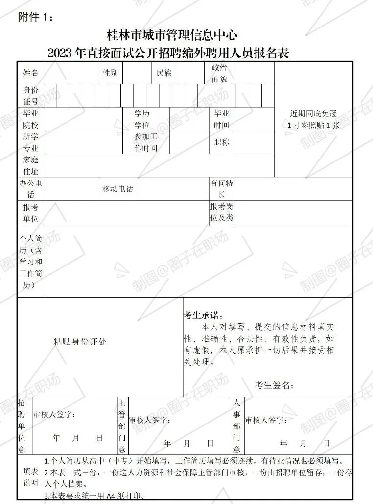 1.桂林市城市管理信息中心2023年直接面试公开招聘编外聘用人员报名表