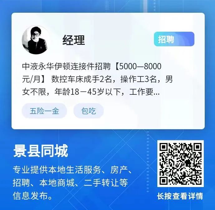 【求职】 男,25,干货3年胶管销售,干过几年餐饮酒店后厨,现想在景县找个长期工作,有用人老板联系10月24日
