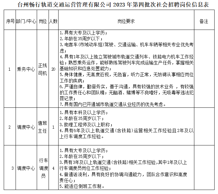 1.本次招聘公告在台州市域铁路S1线一期工程公众号、智联招聘网站发布,每位应聘人员限报1个职位。