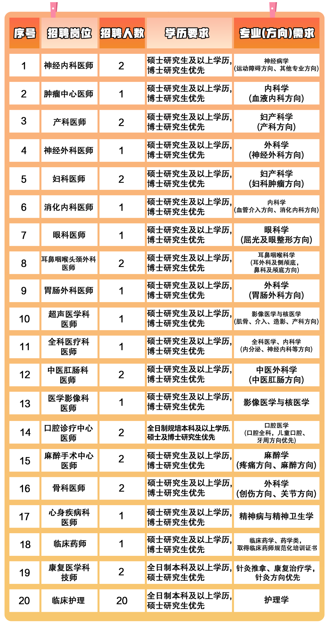 8.护理岗位:全日制本科及以上学历,硕士研究生优先;2023年及以前毕业生须现工作单位为三级公立医院。