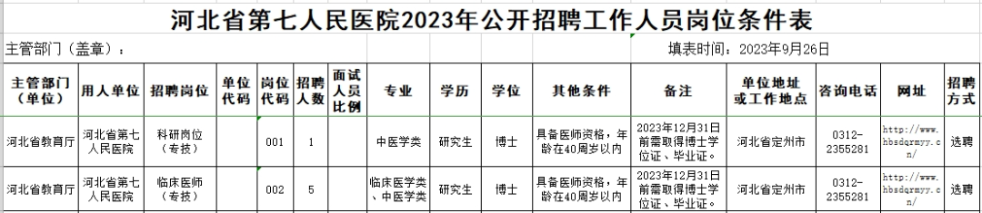 衡水市第二人民医院2023年选聘、招聘人事代理专业技术人员