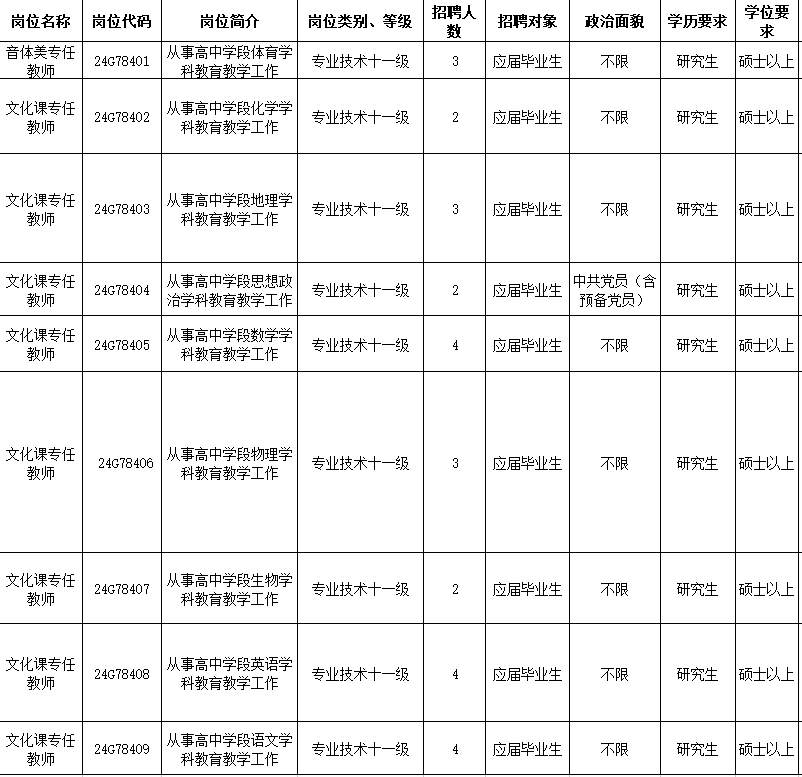 本次招聘教职员7名。