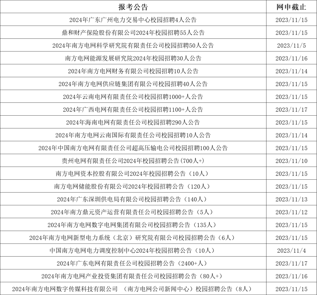 中国南方电网有限责任公司(以下简称南方电网公司)2024年校园招聘工作于2023年10月29日正式启动,现将有关事项公告如下: