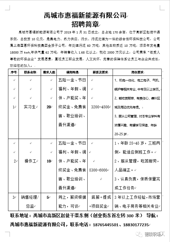 工作内容:通过网络、手机、新媒体等获取客户信息,销售公司产品。人员要求:20-45岁,热爱销售事业,沟通能力强。薪资待遇:底薪+提成,4000-1万元及以上/月;早8点至17点;公司提供午餐。五险,双节福利。人员要求:25-50岁,身体健康,无不良习惯,吃苦耐劳。薪资待遇:日薪制,4000-6000元/月;早8点至18点;公司提供午餐。双节福利。就业岗位信息二十二: