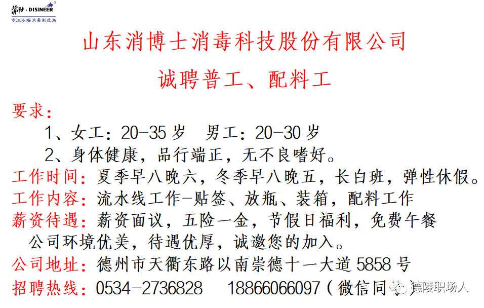 3、有良好的沟通能力,退伍军人、消毒液销售人员优先录用。