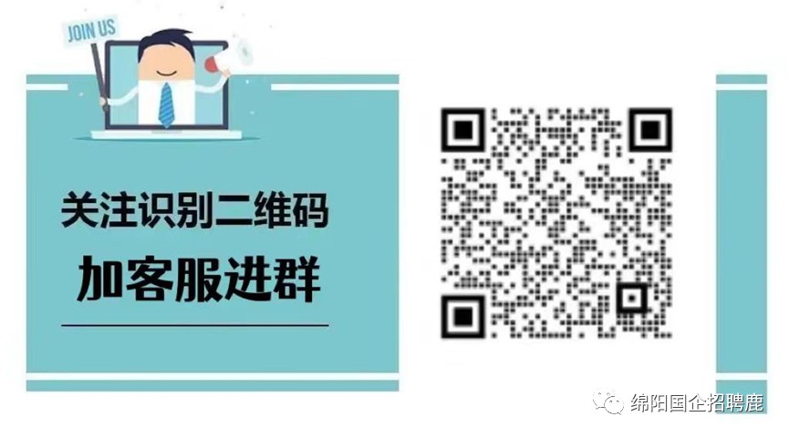 ▌声明:本文由绵阳国企招聘鹿整理发布,转载请注明。本公众号分享的招聘信息来源于网络,如发生劳动纠纷或拖欠工资情况,请您到工作所在地劳动仲裁和劳动监察部门反应情况,维护自身合法权益!能否达成就业意向请大家自行甄别,我们平台不承担由此而引发的任何法律责任。