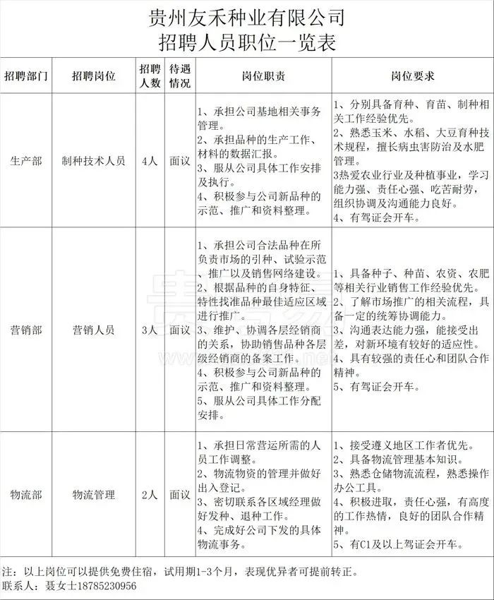 附件:1.贵州友禾种业有限公司招聘人员职位一览表;
