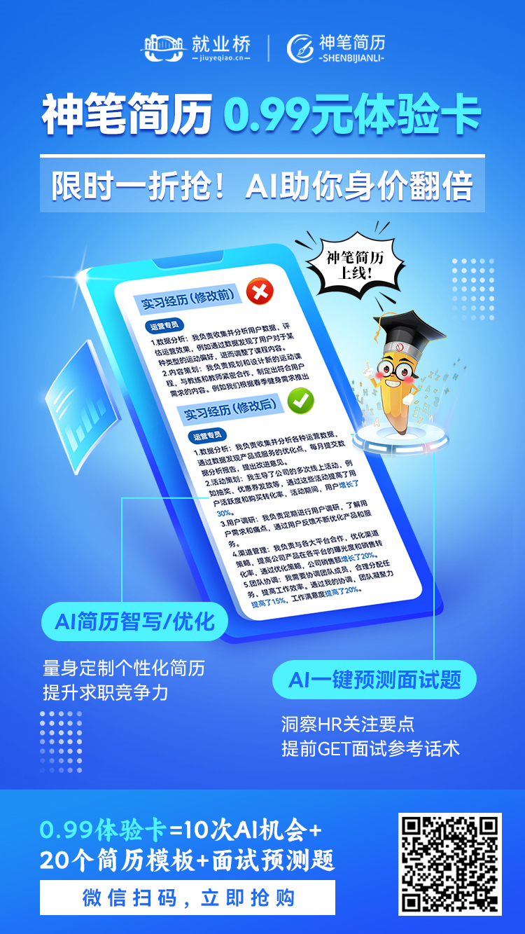 (声明:“就业桥服务中心”微信公众号刊载此文,是出于传递更多信息之目的。若有来源标注错误或侵犯了您的合法权益,请及时与我们联系,我们将及时更正、删除或依法处理。)
