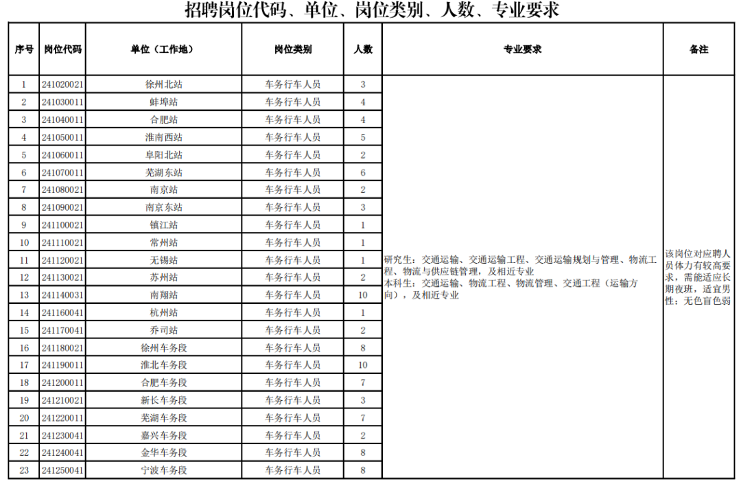 2.遵纪守法,品行端正,热爱铁路事业;素质能力适应招聘岗位工作要求,能够适应铁路沿线偏远地区、野外作业及长期夜班工作。