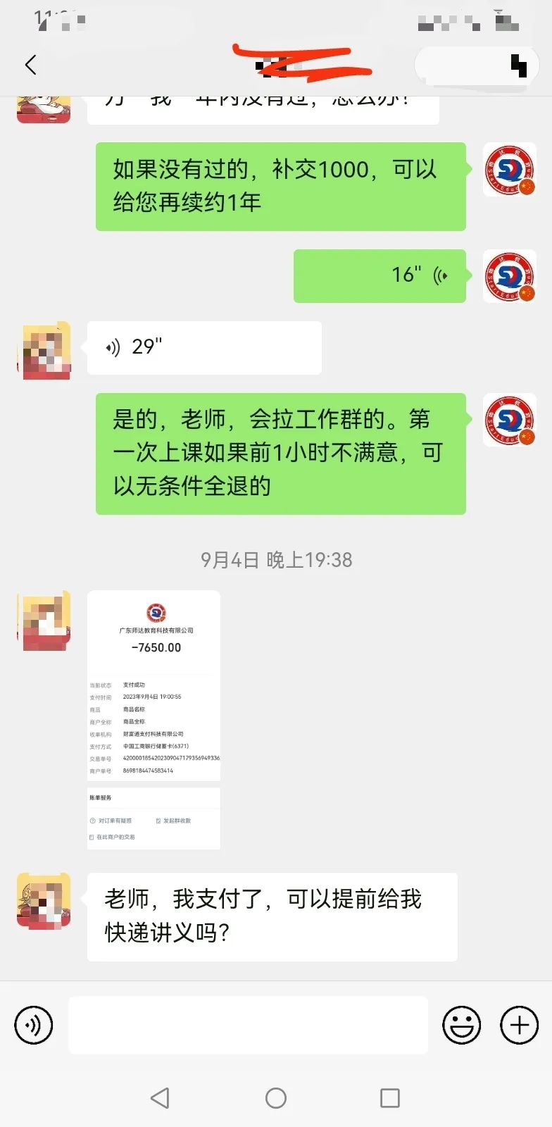 4.开课前三天发送开课通知,上课第一天退还1000押金