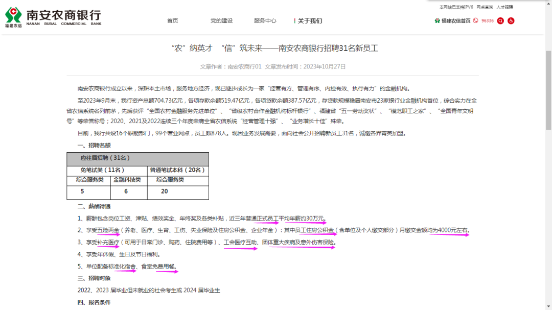 PS:每家农信社/农商行网点的薪资待遇都是不同的,并非都与南安农商行一致。如果对农信社的待遇薪资有疑问的、想抓紧机会备考福建地区24农信社的考试,不要错过农信社(农商行)福建地区公告说明会(回放)哦~