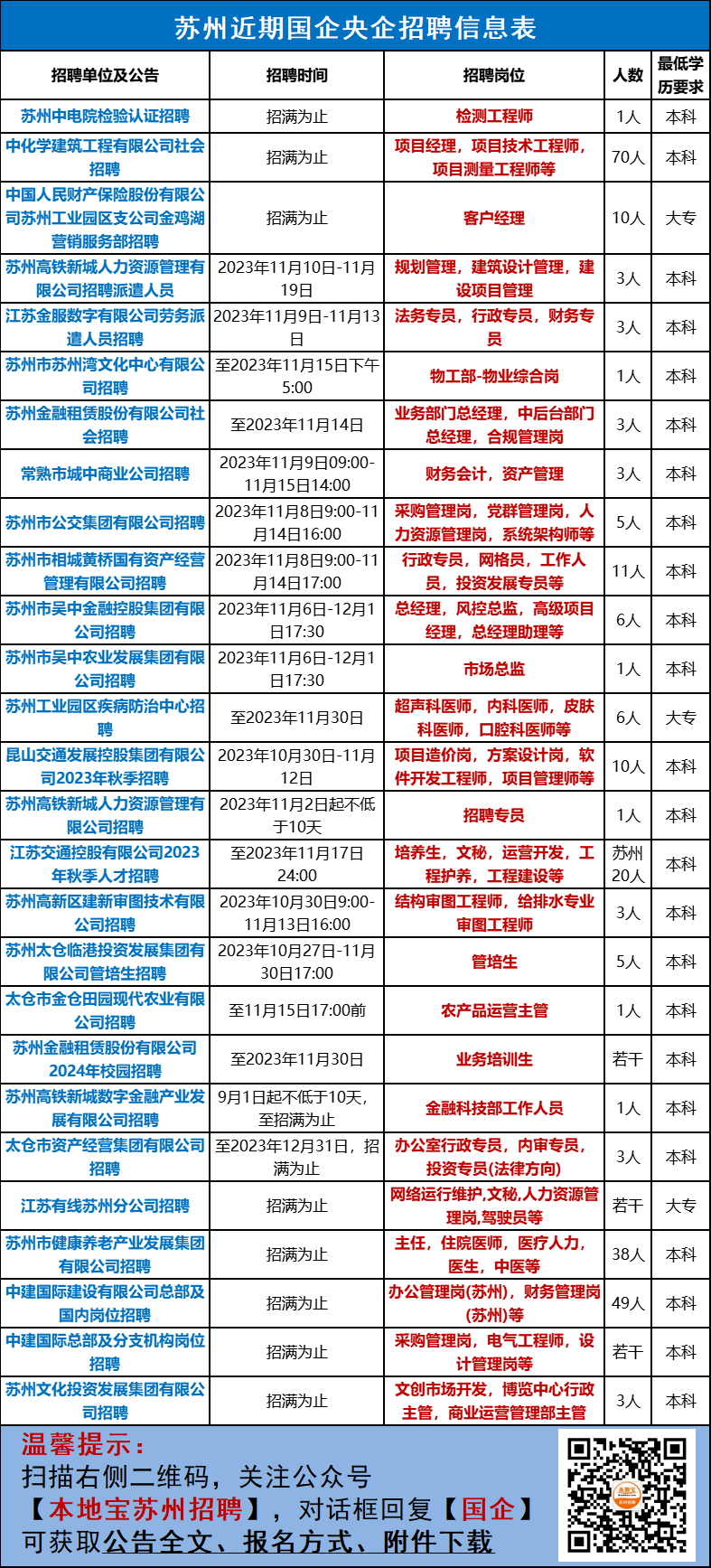 关注【本地宝苏州招聘】公众号,在聊天对话框中回复【相城国企】即可获取完整公告、报名地点、附件下载