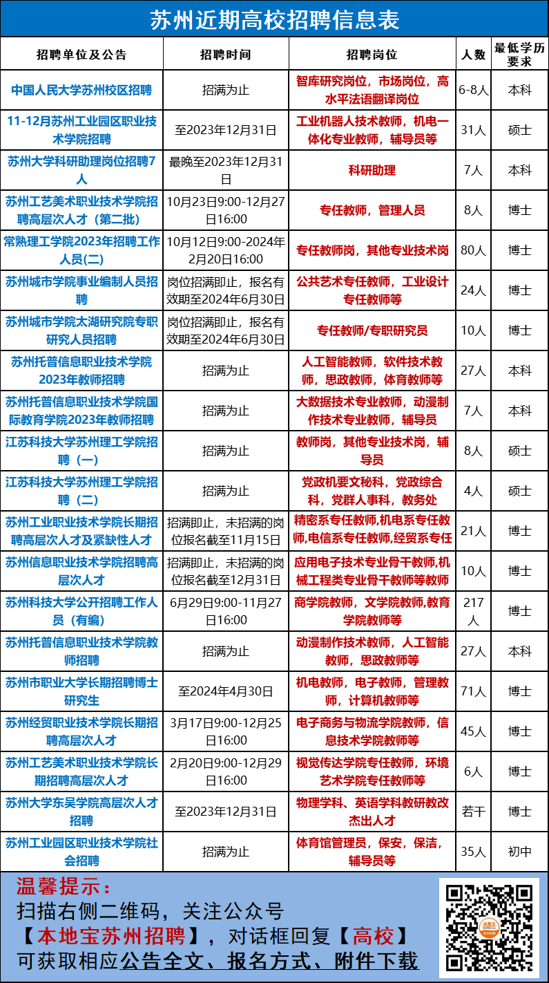 关注【本地宝苏州招聘】公众号,在聊天对话框中回复【大学】即可获取完整公告、报名邮箱、附件下载
