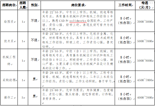岗位:绘图员、技术员、机械工程师、采购助理、操作工