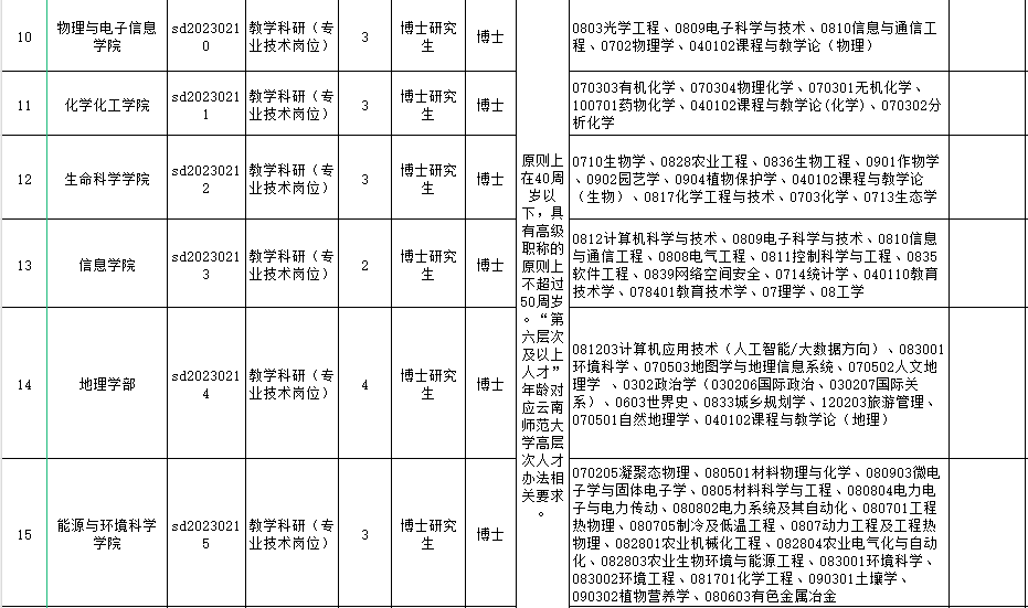 图源:云南人力资源和社会保障网 应聘人员条件 (一)报考者应具备以下条件: 1.具有中华人民共和国国籍,遵守宪法和法律; 2.具有良好的品行; 3.具备招聘岗位所需的专业或任职资格、职业(执业)资格及技能要求; 4.具备适应岗位要求的身体条件; 5.具有岗位所需要的其他条件。 (二)有下列情形之一者不能报考: 1.现役军人; 2.在读的非应届毕业生。 (三)有下列情形之一者不得报考: 1.受到党纪、政纪处分期限未满或者正在接受纪律审查的;正在接受司法调查尚未作出结论的。 2.因犯罪受过刑事处罚的人员、被开除中国共产党党籍的人员、被开除公职的人员、吸毒人员、被依法列为失信联合惩戒对象的人员,以及法律法规规定不得招聘为事业单位工作人员的其他情况的人员。 3.应聘者不得报考聘用后即构成《事业单位人事管理回避规定》第六条所列情形的岗位。 本次公开招聘人员纳入事业单位编制管理,其待遇按照国家、云南省和云南师范大学相关规定执行。入选云南师范大学“第六层次及以上人才”的,享受相关待遇(网址:https://rsc.ynnu.edu.cn/查询)。 报名时间:自公告发布之日起至2023年12月31日 学校人事处电话:0871-65941577,0871-65941528; 招聘岗位 云南农业大学21个学院共公开招聘工作人员20名。具体招聘岗位及招聘条件,详见《云南农业大学2023年第二批公开招聘工作人员计划表》。 应聘人员条件 (一)报考者应具备以下条件: 1.具有中华人民共和国国籍,遵守宪法和法律; 2.具有良好的品行。 3.具备招聘岗位所需的专业或任职资格、职业(执业)资格及技能要求; 4.具备适应岗位要求的身体条件; 5.具有岗位所需要的其他条件。 (二)有下列情形之一者不能报考: 1.现役军人; 2.在读的非应届毕业生。 (三)有下列情形之一者不得报考: 1.受到党纪、政纪处分期限未满或者正在接受纪律审查的;正在接受司法调查尚未作出结论的。 2.因犯罪受过刑事处罚的人员、被开除中国共产党党籍的人员、被开除公职的人员、吸毒人员、被依法列为失信联合惩戒对象的人员,以及法律法规规定不得招聘为事业单位工作人员的其他情况的人员。 3.应聘者不得报考聘用后即构成《事业单位人事管理回避规定》第六条所列情形的岗位。 时间安排:采用全年长期招聘报名,适时组织面试。在招聘岗位人数未招满前,符合条件的应聘人员均可报名。 报名入口/岗位表:关注【昆明本地宝】微信公众号,点击发消息,在聊天对话框发送【招聘】即可获取报名入口/岗位表; 招聘岗位 高中物理教师:2人 应聘条件 1.热爱并立志奉献教育事业,品行端正; 2.健康状况良好,符合教师任职条件,符合从事相关学科教学的专业、技能要求; 3.35周岁以下(1986年1月1日以后),学历全日制本科及以上,须在2022年7月1日前取得国家认可的毕业证、学位证等; 4.具备以下条件者,优先考虑: (1)教学成绩特别突出或有班主任工作经验且在职的; (2)获区级及以上教学名师、学科带头人、骨干教师、教坛新秀等称号且在职的(待遇从优,年龄可适当放宽); (3)带过完整一届毕业班或有毕业班教学经验者优先录用。 福利待遇 1、教职工子女免费在校就读,不在本校就读者按集团规定报销子女上学学费; 2、财政工资按五华区事业编标准统一发放、十三薪; 3、绩效工资、职级津贴、首席导师补助、备课组长补助、毕业班补助、奖金面议; 4、入职签订劳动合同,学校按有关政策购买“五险一金”; 5、福利:免费住宿、首导免费就餐、生日会、生日礼物、每月福利、体检、工装等 6、职业发展:带薪培训、出国学习、岗位晋升、职称评聘、职级教师评审。 投递邮箱::ynclsyzx@163.com -END- 右下角,您点赞和在看 小编工资涨2毛