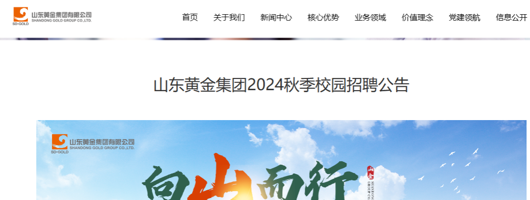 根据业务发展和工作需要,现为权属企业诚聘优秀高校毕业生。 本次招聘涉及山东黄金集团所属52家企业的生产、科研、管理等390个岗位,1017人,涵盖地质、测量、采矿、选矿、冶炼、机电、安全、化学、环境工程、土木工程、工程管理、计算机、人力资源、文学、法律、财务、工商管理专业学科。 用人单位情况介绍、招聘岗位职责和具体资格条件、报名邮箱等详见《招聘岗位需求表》 (一)遵守中华人民共和国宪法和法律,思想政治素质过硬,拥护中国共产党领导和社会主义制度。 (二)品行良好,无违法违纪行为。 (三)具有良好的身体条件、心理素质和岗位所需的专业或技能条件。 (四)全国普通高等院校应届毕业生;回国(境)后初次就业且具有教育部留学服务中心派遣资格的国(境)外留学生;择业期内未就业毕业生,即毕业离校时未落实工作单位,户口、档案保留在原就读学校或转回入学前户籍所在地的毕业生。 (五)应聘人员毕业时须取得相应的毕业证和学位证。 (一)网上报名 网上报名时间自公告发布之日起至2023年11月30日。 应聘者可登陆山东黄金集团有限公司网站查看招聘信息,下载《招聘报名表》,填写后连同相关报名材料、证明材料扫描件或数码照片发送到报名邮箱(请将全部报名材料打包压缩,并在压缩包以及邮件标题中注明“姓名+单位+岗位名称”)。参加面试时须携带相关证明材料原件。 山东黄金集团网址:http://www.sd-gold.com/ (二)校园宣讲 山东黄金集团将赴有关院校或驻地高校进行专场宣讲或参加校园双选会(线上、线下)等,具体时间和地点详见校内公告。宣讲期间将现场接收纸质简历,对投递简历的优秀毕业生组织现场面试;通过现场面试的,可不用参加集团公司组织的线上素质笔试。 (三)资格审查 报名结束后,各用人单位根据招聘岗位资格条件和报名者具体情况,对报名人员进行初步筛选,确定入围考试人员名单。 (四)组织考试 通过资格审核确认的,参加由集团公司组织的线上素质笔试和各用人单位组织的面试(专业笔试),考试方式、具体时间、地点另行通知。 (五)人选公示 根据考试成绩和岗位需求确定拟录用人选并公示,公示无异议后签署就业协议。 (六)体检入职 拟录用人选须按用人单位要求参加体检,体检不合格或放弃体检者不予录用。拟录用人选毕业后,用人单位查验有关证件,办理入职手续,签订劳动合同。 薪酬待遇按照录取后工作单位薪酬制度执行。 联系方式 如对本次招聘有任何疑问,请发邮件至sdhjjtzhaopin@sd-gold.com,邮件标题格式请注明【2024秋季校园招聘咨询】,我们将及时予以回复。 其他事项 (一)资格审查贯穿招聘全过程。应聘人员应提供真实有效的相关信息和材料,凡弄虚作假者,一经查实,立即取消应聘资格。 (二)每位应聘者限报一个岗位。 (三)应聘人员报名时须同时发送本人身份证、学历和学位证书或相关证明材料扫描件。 (四)考试、录用通知将通过电话或电子邮件、短信等方式告知,具体时间以通知为准;请确保填写的邮箱、手机号码有效,并及时查阅相关信息。 (五)山东黄金集团有权根据岗位需求变化及报名情况等因素,调整、取消或终止个别岗位的招聘工作,并对本次招聘享有最终解释权。 (六)山东黄金集团招聘不以任何形式向应聘人员收取报名、培训等费用,不组织也不授权任何机构、个人组织应聘前培训活动,请提高警惕,谨防受骗。 扫码进群领取备考资料 ![]() ![]() 点击下方灰色卡片 回复【1115】 查看今日更多央企国企公告&下载职位表