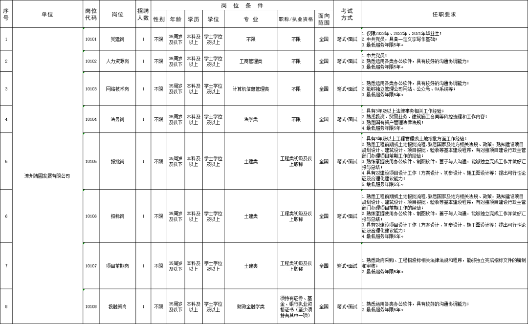 关注三明华图,获取更多招考资讯~ 本次招聘由漳州高新区区属国有企业联合组织,共计划招聘65名。招聘单位、岗位、人数及资格条件,详见《2023年漳州高新区区属国有企业公开招聘工作人员岗位信息表》(附件1,以下简称《岗位信息表》)。