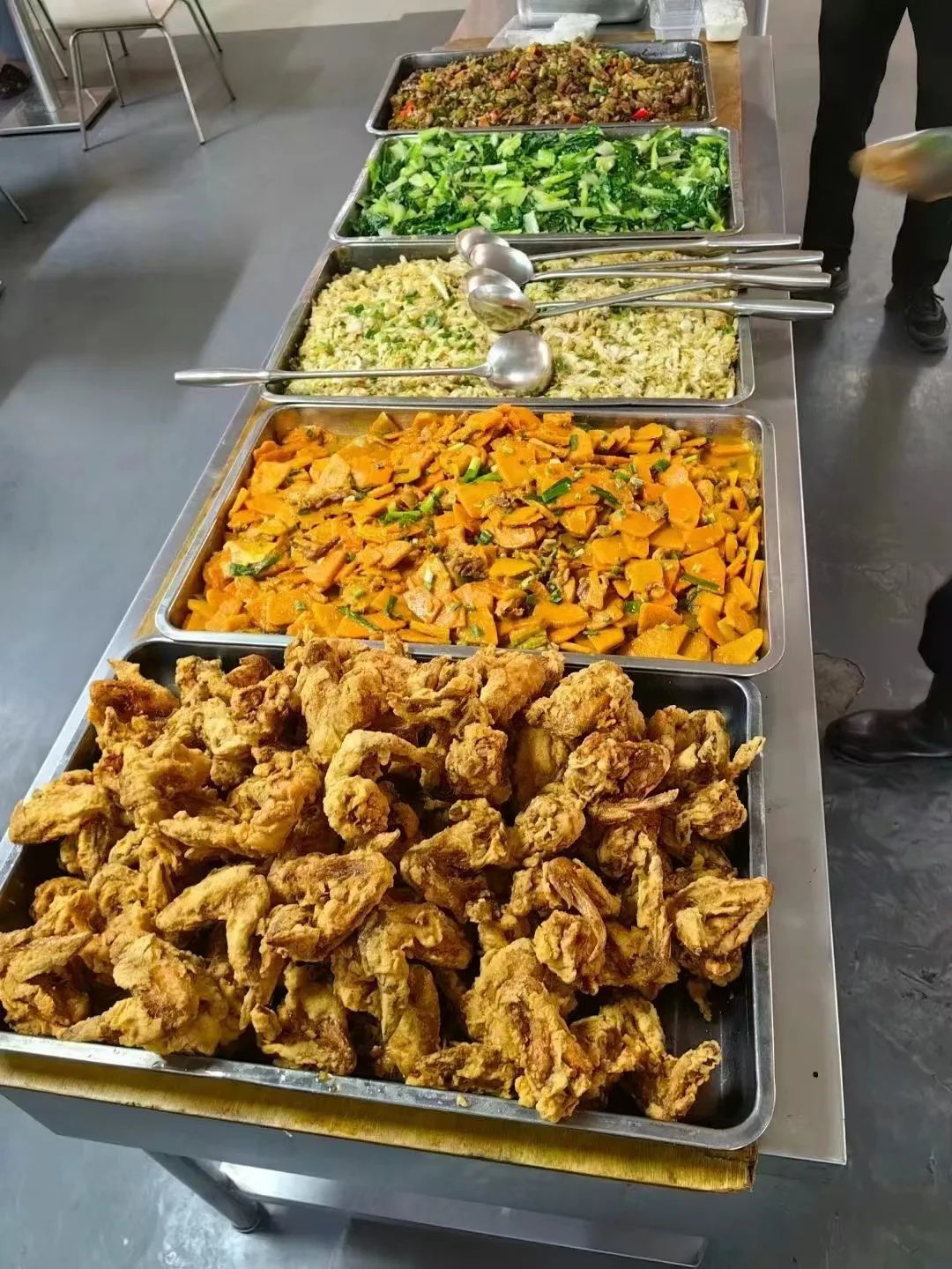 ①公司食堂就餐,工厂包吃三餐,食堂环境优美,菜式品种多,味道好!