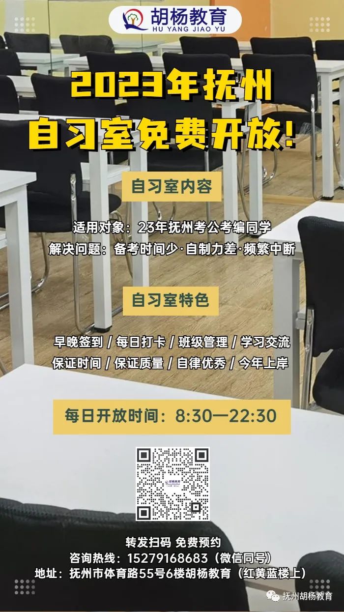 2023年抚州事业单位/三支一扶/医疗卫生招聘笔试班胡杨教育抚州分校还准备了免费自习室提供给大家