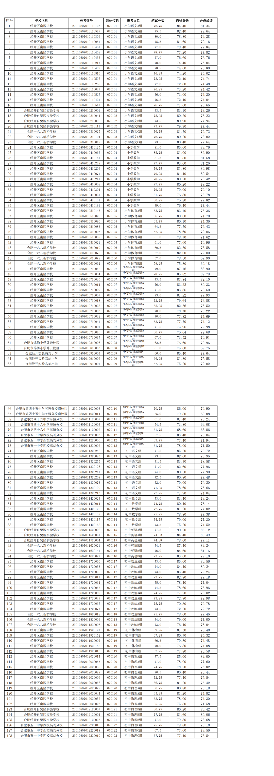 2023年下半年合肥经济技术开发区中小学新任教师公开招聘面试成绩及合成成绩的通知