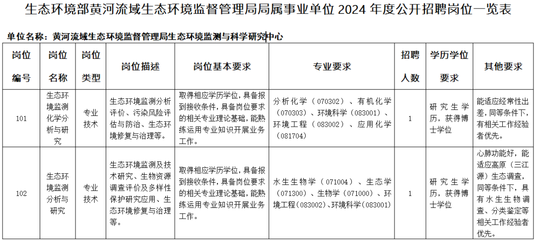 (四)招聘工作时间及有关事项如有调整,以生态环境部招聘系统网站和黄河流域局网站最新公告为准。
